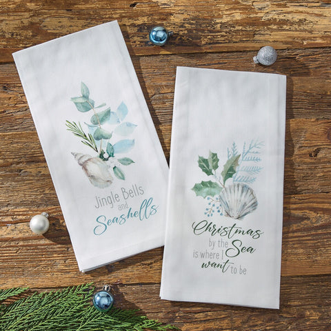 Welcome the Christmas season into your home with our Christmas Seashells Decorative Dishtowels. Choose from 2 different christmas designs.  The simple phrases will add warmth and happiness to your kitchen.