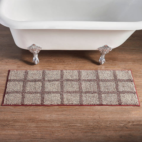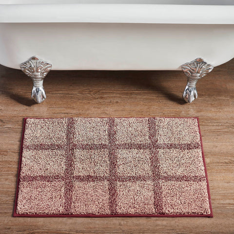 Step out of the shower and into cozy rustic country bliss with the Correll Bath Mat. Crafted with a tufted design and window pane check pattern, this rug adds a touch of rustic elegance to your bathroom decor. Its absorbent cotton construction ensures it's not only stylish but also highly functional, quickly drying your feet as you step out of the shower. Designed for both aesthetic appeal and practicality, this bath mat is machine washable, making it easy to clean and maintain. The rugged and durable construction ensures it withstands daily use while the deep burgundy color adds a warm and inviting atmosphere to your bathroom space. This tufted and stylish mat features a windowpane check design that complements any Primitive or Country-themed bathroom.