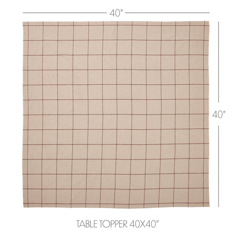 - Part of the Correll Collection, this square table topper features a timeless windowpane pattern, creating a classic and inviting atmosphere in a natural tan and rich burgundy color.