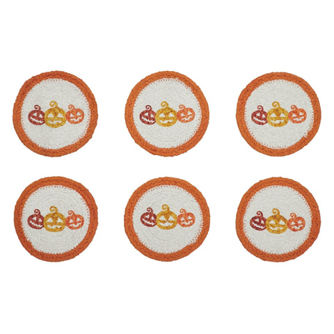 - SET OF 6: With their farmhouse-inspired aesthetic, these round coasters feature a graphic print of Halloween Jack O Lanterns, serving as both functional accessories and charming decorative accents for your fall, Thanksgiving, and Halloween table settings.