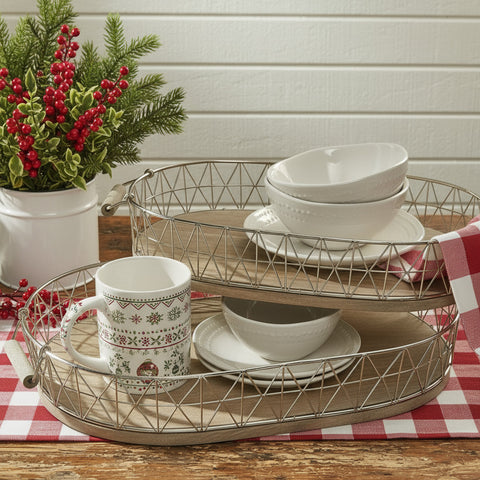 Our Crestmont Oval Tray Set of 2 is an efficient, stylish solution for organizing and serving with minimal effort. The two-piece set features a unique metal design with a wood bottom base to easily store items while looking great. These versatile basket trays can be used to store food, knickknacks, fruits, vegetable, flowers and much more.