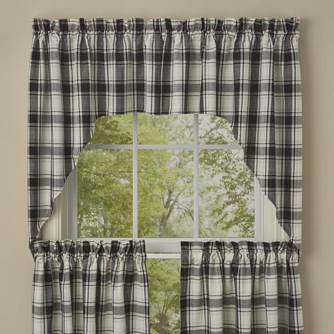 Add a touch of classic, country primitive style to your window with the Crosswood Swag Set. Displaying exquisite, modern design with grey-beige, black and antique white, perfect for your updated country style home. Curtains include rod pocket for easy hanging.