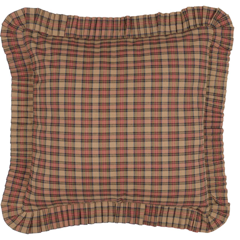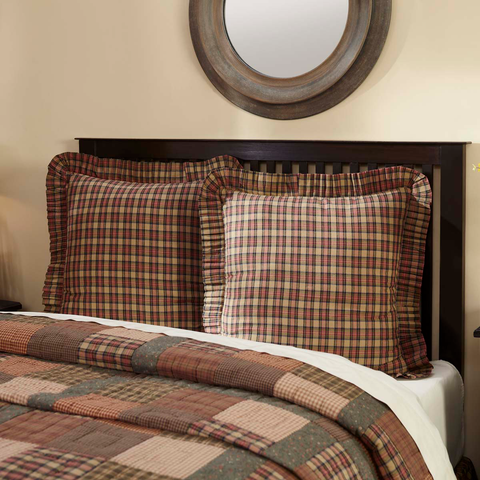 The Crossboro Fabric Euro Sham matches a tan, blue, green, and red plaid found in the quilt patchwork and adds balance to beds with the Standard and King Shams. 100% cotton, trimmed with self-pleated ruffles.