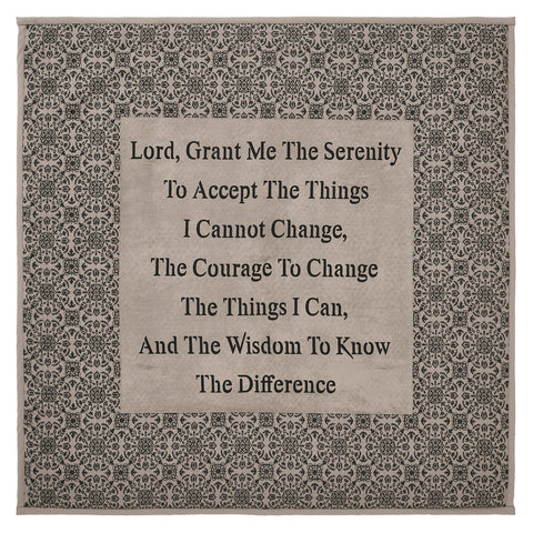 - The Serenity Prayer and intricate jacquard design in black and tan adds character and charm to your living space.