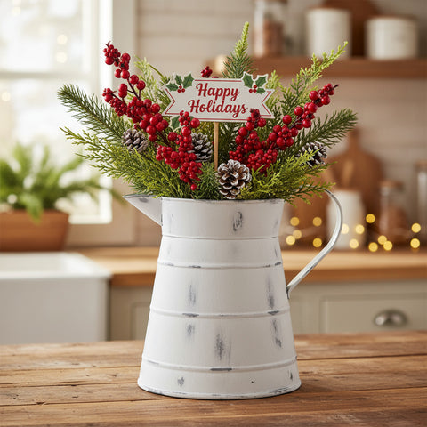 Our Layne White Milk Pitcher features a rustic distressed white aged finish. Decorate your table in country style - use with artificial or fresh florals. It's water tight for use with fresh flowers.