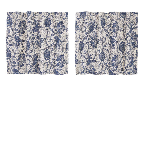 The Dorsey Navy Floral Tier Set of 2 brings warmth to your living area with a vintage decor color and a soothing design. This set of 2 tiers feature a rich navy color with a straight edge design and cotton lining. Our tiers are finished with a convenient rod pocket that adds country appeal to your kitchen or living room.