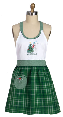 Life is sweet with the embroidered Evergreen Forever Hostess Apron, as you protect your clothing while looking like you're wearing a pretty dress! Side pocket for convenience and center embroidery with a Snowman and Christmas Tree and the words "Winter Wishes ". Machine washable, one size fits most.