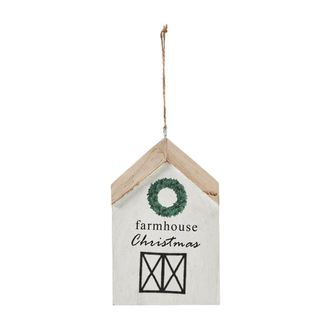 • This wooden ornament features the phrase "Farmhouse Christmas" printed on a house-shaped design, adding a touch of warmth and nostalgia to your seasonal decorations.