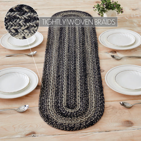 Bring the farmhouse to your tabletop with our Farmstead Black Braided Table Runner. This rustic table runner is the perfect feature for your kitchen or dining room table. The homemade feel comes to life with the braided jute blend fabrics soft black, creme, and charcoal grey.  It's perfect for any time of the year and can also be used as the foundation for a magical display in any room where you want that rustic farmhouse feel.
