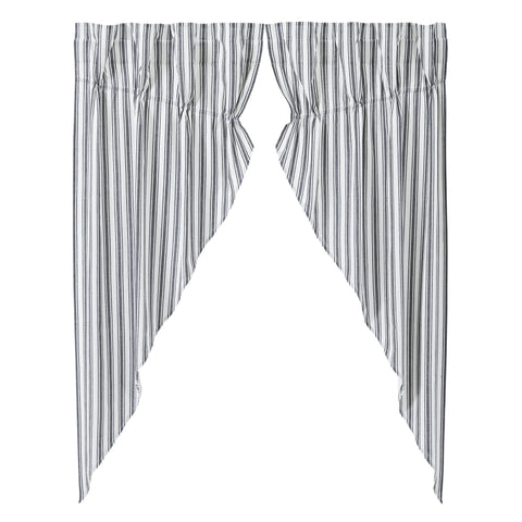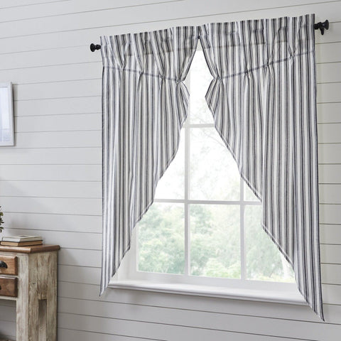 Farmstead Black Ticking Stripe Short Prairie Curtains