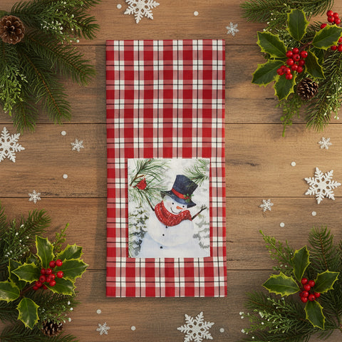 Add a Holiday touch to your kitchen with the Flurry Snowman Dishtowel.  This dish towel will serve as the perfect kitchen décor and/or gift.  It'll definitely be a wonderful addition to any color scheme..   Measures 18" x 28".  Towel Color: red, black and white plaid with Snowman graphics.