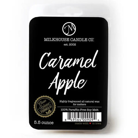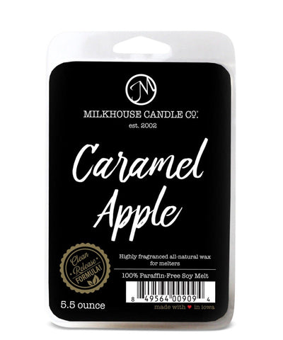 Fresh, crisp apple slices dipped in gooey caramel with a touch of buttery maple, sweet vanilla and warm cinnamon. The large melt is a 5.5oz package. It contains 100% paraffin-free soy wax. it has 6 individual cubes. Love melts but hate the clean-up. Meet the easiest melts ever. Our clean release melt formula won't stick to the sides of most warmers. Simply turn off the heat source, let solidify, and dump the solid wax in the trash.
