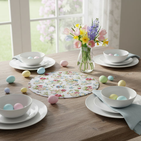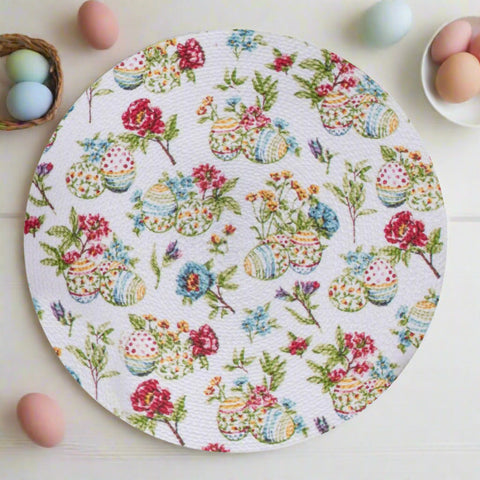 Dress up your country kitchen with our Garden Bunnies Braided Placemat. Featuring flowers and decorative eggs, made of durable construction and they are pretty as placemats or as a centerpiece!