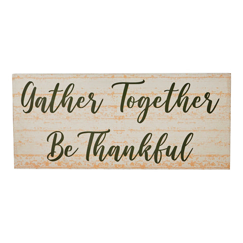 - Embrace the Thanksgiving spirit with this charming MDF tabletop sign featuring the uplifting message "Gather Together Be Thankful" serving as a heartwarming reminder of the importance of togetherness and gratitude during the holiday season.