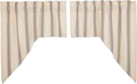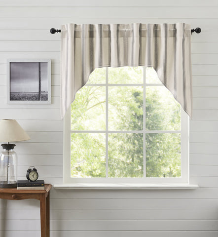 Functional and stylish, our Graycie Grain Sack Stripe Swag Set 36x36x16 helps bring your farmhouse-inspired vision to life. Perfect for any season, these 100% cotton curtains feature a medium creme base with nickel grey grain sack stripes. This refreshing window treatment coordinates effortlessly with our Graycie bedding collection for a complete look in your country-style bedroom.