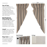 Classic and timeless, our Grain Sack Charcoal Prairie Short Panel Set 63x36x18 helps bring your cozy cottage-inspired vision to life. Perfect for any season, these textured cotton chambray curtains feature a khaki base with charcoal black grain sack stripes. This refreshing window treatment coordinates effortlessly with our Farmstead Charcoal bedding collection for a complete look in your vintage-style bedroom. Give your curtains a simple refresh using the drawstring ties attached.