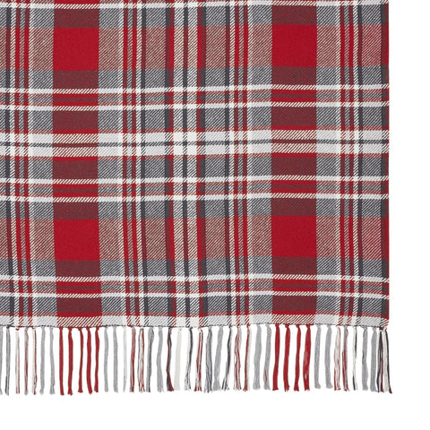 Transform your home into a cozy winter lodge with timeless plaid. The Greland Plaid Woven Throw measures 50x60 inches. The classic rustic country throw blanket features a bold red and light grey plaid. Tasseled edging adds an extra pop of texture.  Due to hand-made nature of this product, minor variations in size and color may occur. Items may shrink unevenly due to varying fabric content.