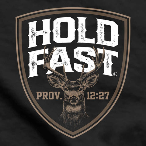 Patriot. Provider. Protector. This “Deer Flag” Hold Fast® Adult Hoodie in Black speaks to the heart of a man who honors his responsibilities and finds his strength in God. The design features a proud buck and distressed American flag—a bold combo that reflects grit and grace.