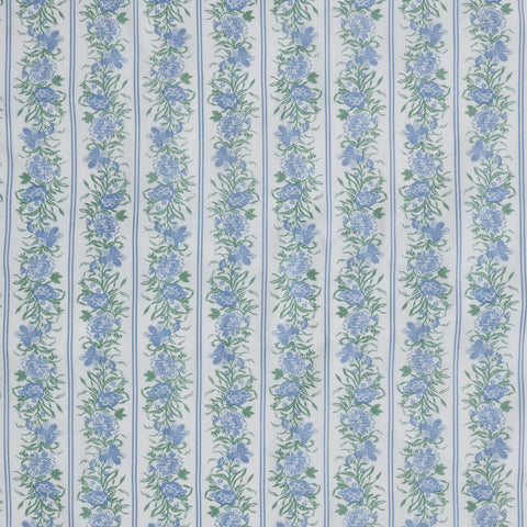 The Jillian Bed Skirt features a vertical, floral vine print in natural creme, soft green, and blue. Our cotton farmhouse bed skirt is constructed with gathers and split corners for easy use.