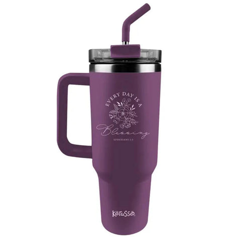 Count your blessings with this pretty + practical “Blessing” Stainless-Steel Mug w/Straw in Purple. A handy two-in-one lid allows you to sip your drink with the flip lid, or drink from the Stainless-Steel Straw with Silicone tip. Take this attractive mug along for hydration on the go, at the gym, or at the office. What are you thankful for? Make time to reflect on the people and good things in your life, and to thank the Lord for each and every blessing. Every day we are alive is an opportunity to praise the Lord, and to love others well in Jesus’ name.