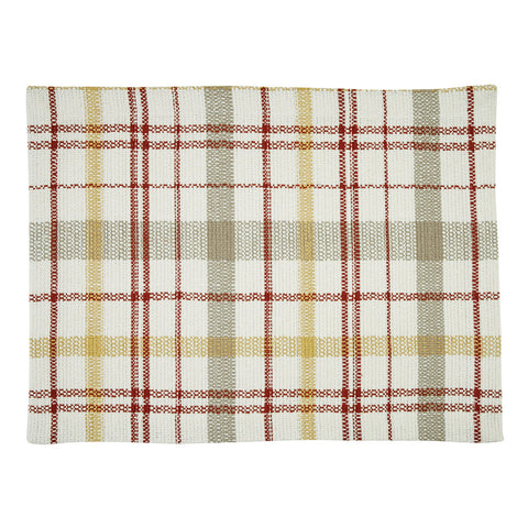 Set your farmhouse country table with our Kinwood Placemats Set of 4. The placemat features textured red, yellow, white, and stone plaid.