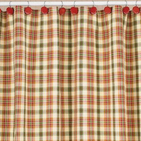Our Lemoncrest Shower Curtain lends a timeless farmhouse quality to your home. The striking green, red, lemon gold and white plaid colors is the perfect complement to any country home design, with a bold splash of color!
