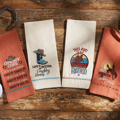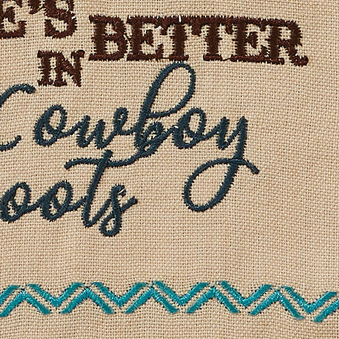 Add a charming country touch to your kitchen with our fun Life's Better In Cowboy Boots Dishtowel. Features a Cowboy theme. This dish towel also makes a great gift!