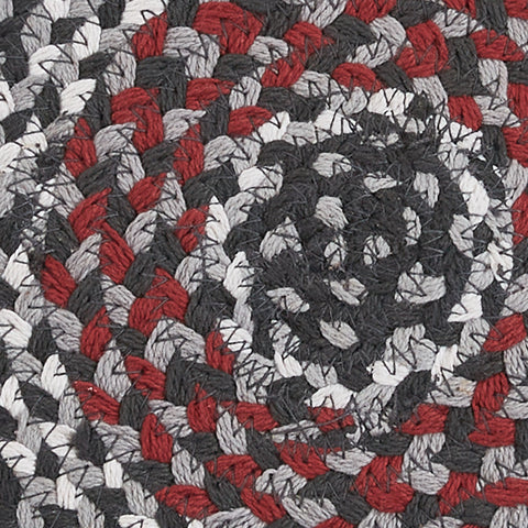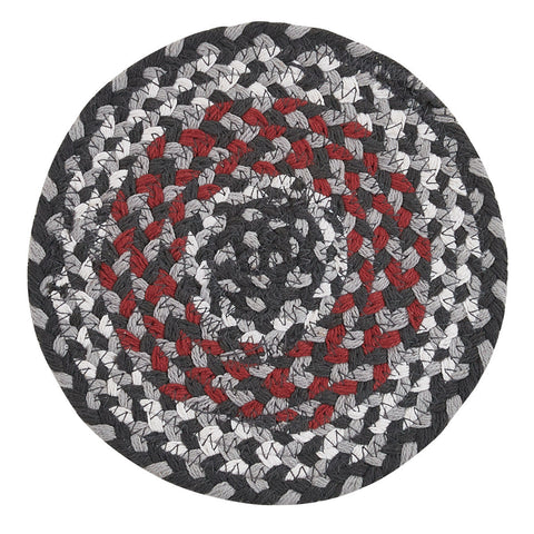 Protect your furniture in farmhouse style with our Limestone Braided Round Trivet 8" Set of 2. This 8 inch rustic table trivet is the perfect feature to stop heat from hot pots and pans from destroying a valued table or countertop. The homemade feel comes to life with the woven braided jute wool blend fabrics in charcoal, grey, red, and white displayed in concentric circles. Set of 2.
