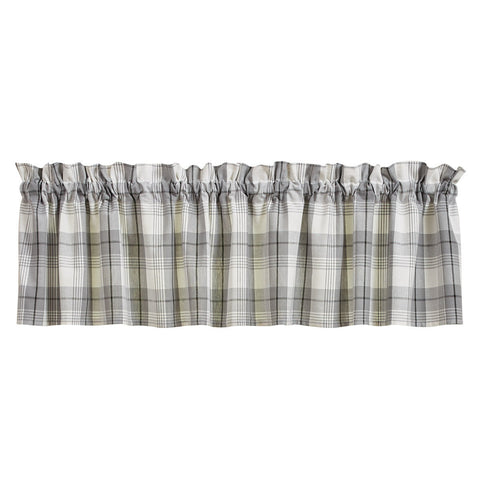 Adorn your country farmhouse windows with our Limestone Valance. The Valance features grey, charcoal and white plaid cotton fabric.