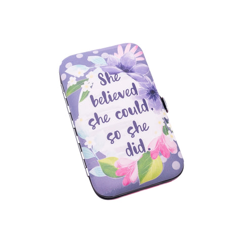 This charming She believed she could, so she did Manicure Set features a padded case, floral artwork, and a sweet inspiring sentiment. A 5-piece set. Makes a great gift!