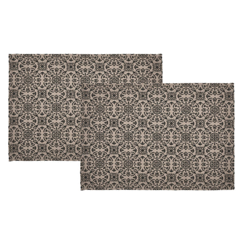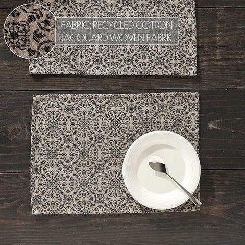 Medallion Black Tan Jacquard Placemats - Set of 2