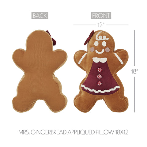 Add a sweet and whimsical touch to your holiday decor with the Mrs. Gingerbread Appliqued Pillow. Designed in the shape of a cheerful gingerbread cookie, this 12x18 decorative pillow captures the warmth and nostalgia of classic Christmas baking. Her gingerbread tan body is accented with white appliqued icing details, a dark red bow, and a festive apron, making her a charming addition to your seasonal display. Crafted from soft, durable cotton blend, Mrs. Gingerbread also features Christmas candy button embellishments that enhance her festive personality. The pillow's playful design and primitive rustic aesthetic bring a cozy, handcrafted feel to your space. Whether displayed on a chair, bench, or shelf, she's sure to bring smiles and a bit of Christmas magic to any room. Ideal for the bathroom, bedroom, dining room, entryway, kitchen, or living room, this decorative piece adds character and holiday cheer wherever it's placed. Please note, this pillow is intended for decorative use only and is not a toy. Due to small parts, it is not suitable for children under 3 years old. Spot clean as needed to keep your gingerbread guest looking her best all season long.