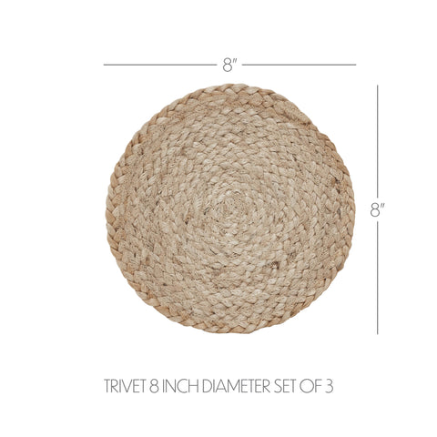 - Enhance your Country and Farmhouse kitchen decor with our Natural Braided Collection Round Trivet Set. These trivets are not only functional but also add a rustic touch to your dining area.