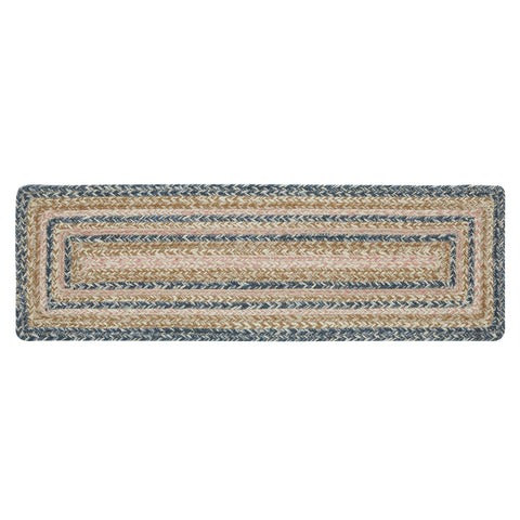 Protect stairways from damage and add style with braided jute in bright, modern tones. The Kayley Jute Stair Tread Rectangular includes one 8.5x27 inch stair tread back by a latex spray to help prevent slipping. The low-profile jute features an innovating blend of 80 percent Jute and 20 percent cotton and other fibers to help the tread lay flat and resist creasing. This rectangle-shaped tread features a blend of blue, misty rose and golden tan braids for a cheerful, country boho look. Coordinates with the Kayley Collection for a complete modern farmhouse set featuring bedding, rugs, kitchen accessories and more.