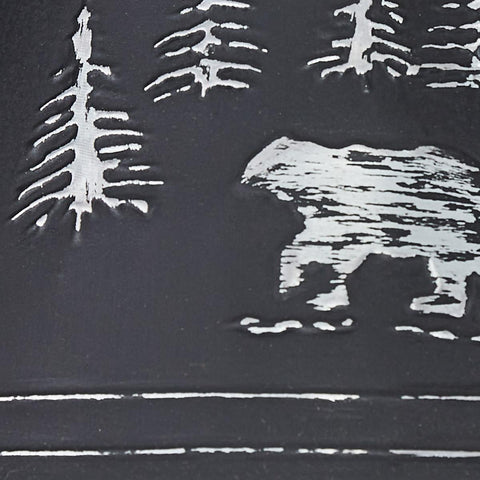 Rustic country charm awaits with this unique Ozark Black Bear Lamp Shade. Made of sturdy cast metal with a rich black and raised grey finish, the lamp shade displays a bear in the wilderness scene that will add an outdoorsy feel to your cozy lodge.