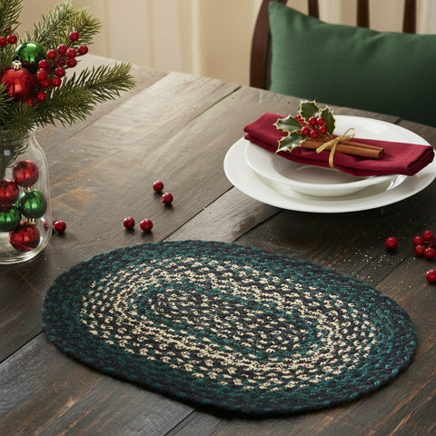 Add that cozy, farmhouse feel to your tabletop with our Pinehurst Braided Placemat. This rustic table placemat is the perfect feature for your kitchen or dining room table. The homemade feel comes to life with the woven braided jute blend fabrics in pine green, natural and black displayed in concentric fashion. It's perfect for any time of the year and can also be used as the foundation for a magical display in any room where you want that rustic farmhouse feel. Sold individually.
