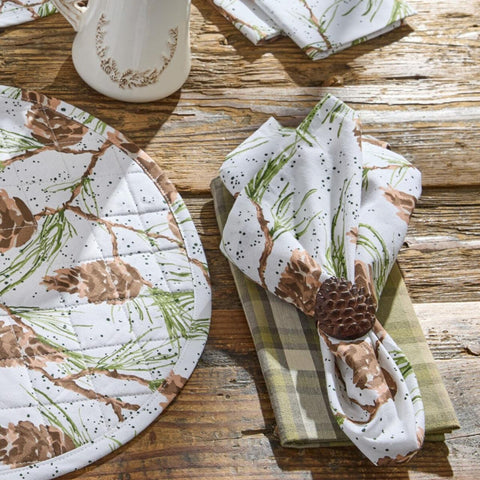 Add an Outdoor touch to your country kitchen with our Pineview Lodge Napkins! Features a beautiful array of pinecones. Set of 4.