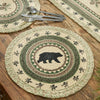 Set your rustic primitive country table with our Pineview Lodge Braided Placemat Set of 4. The placemat features white, brown, green cotton fabric and a walking bear in the center.