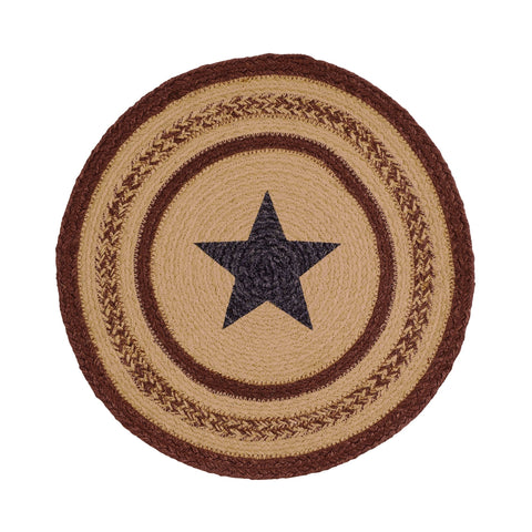 Invite an instant Americana classic into your home or retreat with the braided Navy Star Jute 15" Trivet! Use it as a heat protection trivet or table placemat. Featuring variations of burgundy, navy, and natural jute braids. One stenciled navy 5-point star is proudly displayed in the center. Reverse has no stenciled stars.