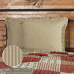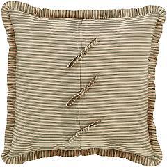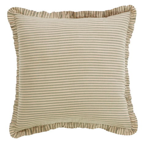 Relax and feel at ease with soft cotton and elegant shades of khaki and sage green. The charming Prairie Winds Ticking Stripe Euro Sham measures 26x26 inches and features the vintage feel of traditional ticking stripes and soft, unfussy ruffles. Includes tie-style closures to securely hold fill pillow (not included) in place.