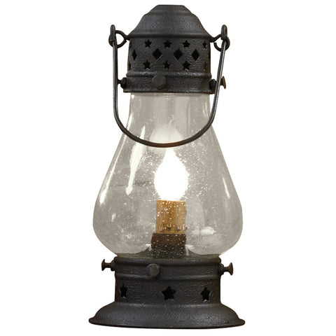Bring primitive charm to your home with our Rustic Black Onion Lamp.  Our Onion lamp is representative of styles first developed in the mid 19th century when glass making improved and whale oil was more available. Inspired by antiques, these electric lamps feature bubble glass for an aged look.