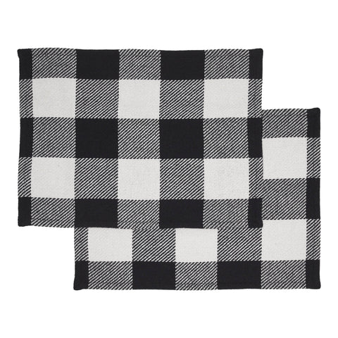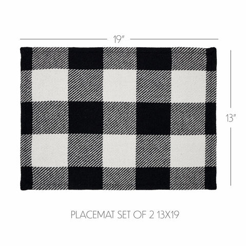 - A set of 2 farmhouse-style placemats from the Sable Ann Buffalo Check Collection in classic country black with a timeless buffalo check pattern.
