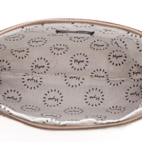 Myra Bags are made from upcycled materials like canvas tarps and tents, using recycled materials to avoid waste. The Myra Bag collection is about creating great fashion that's earth friendly. The bags include special detailing like leather handles, trim, and printed graphics to give Myra Bags a one-of-a-kind style. Every bag is handcrafted and infused with the spirit of vintage style.