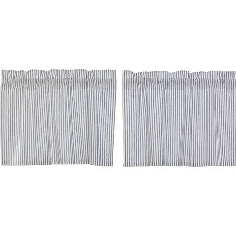 Add a classic country touch to your home with the Farmstead Blue Ticking Tier Set of 2 - 24"x36". Denim blue and soft white ticking present a refreshing, farmhouse look to brighten up your space. Beautifully textured cotton fabric in denim blue and soft white ticking stripes offers a simple, romantic feel you can't resist for your farmhouse style home. This country curtain features a rod pocket for easy hanging, lined, 100% cotton, and machine washable for easy maintenance.