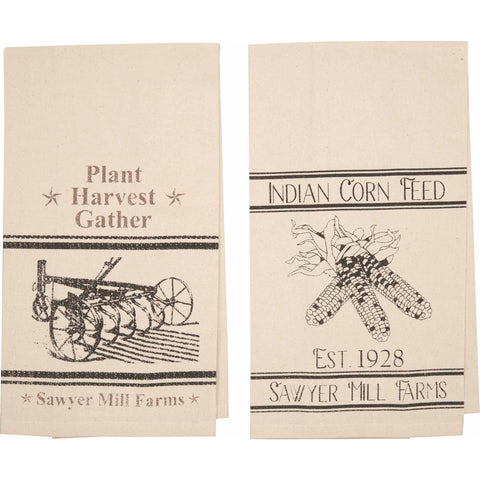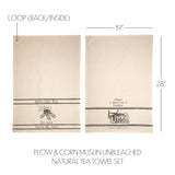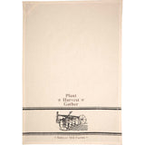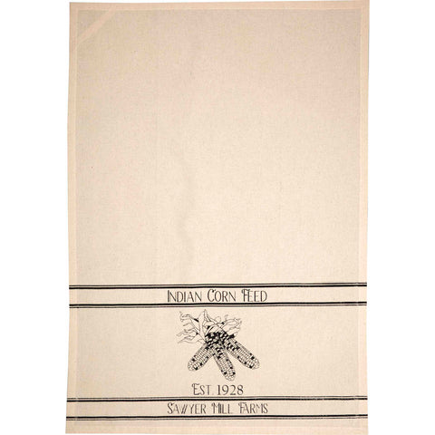 Add a fun, farmhouse element to your kitchen with the Farmstead Charcoal Plow & Corn Tea Towel Set. Crafted in unbleached natural Muslin, cotton material for a soft hand feel. Featuring a farm plow and corn stenciled in a distressed appearance surrounded by grain sack stripes and Farmstead writing. Use this tea towel for drying your dishes or hang on your oven handle for decoration to match your country style decor. Get creative and hang this kitchen towel on a decorative wall mount with the fabric loop attached on the inside.