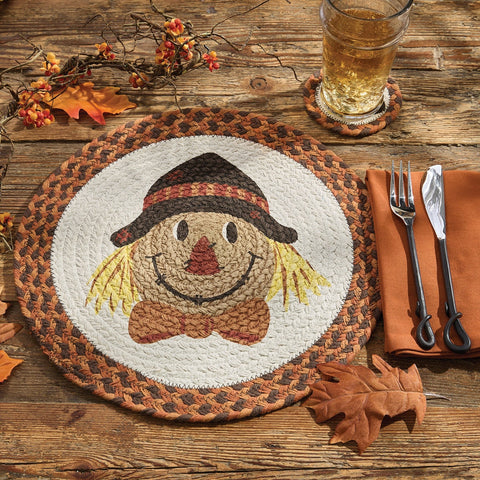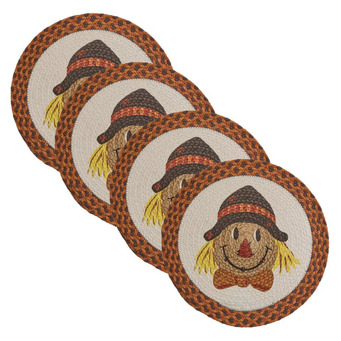 Adorn your table this Fall with our Scarecrow Round Braided Placemat Set of 4.   The charming stenciled depiction of a scarecrow is the perfect way to add an autumn accent to your kitchen.