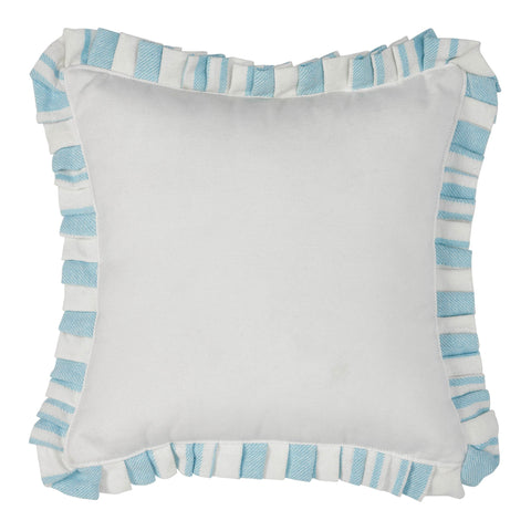 Our Serene Hydrangea Ruffled Pillow adds a delightful addition to your farmhouse and country decor. Measuring 12x12 inches, this cotton pillow with a plush polyester fill is the perfect choice for your couch, bed, or studio. Adorned with soft blue hydrangea blooms from and soft blue and white ruffles, this decorative throw pillow adds a touch of floral elegance to your space.  Its 12x12 square size makes it a versatile accent, whether you need lumbar support or a decorative cushion. The soft blue floral design effortlessly blend with any neutral color scheme, adding a touch of natural beauty to your home. This decorative pillow is more than an accent; it's a statement piece that complements your decor, whether it's farmhouse, midcentury modern, or simply neutral.