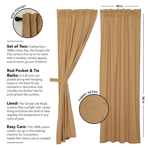 Crafted from a cotton-linen blend, the Simple Life Flax Khaki Panel Set lives up to its name with a timeless, honest appeal, sure to never go out of fashion. The naturally textured fabric in dark khaki gives these simply designed curtains a substantial yet relaxed look in your home. Lined with white cotton, these unfussy drapes add privacy to a room while letting in some sunlight. Our classy yet casual curtains include a rod pocket for easy hanging and tiebacks for design convenience.