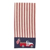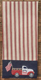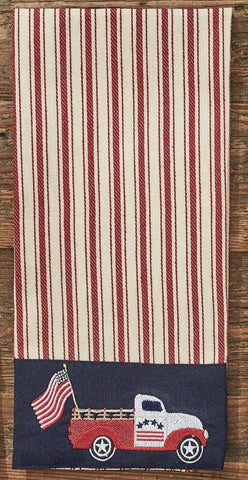 Show your patriotic spirit with our Star Spangled Truck Dish Towel. It features red and white ticking stripes and an embroidered star-spangled vintage truck with the American Flag.
