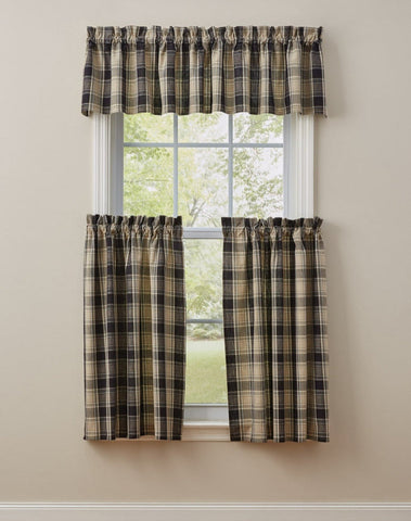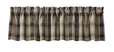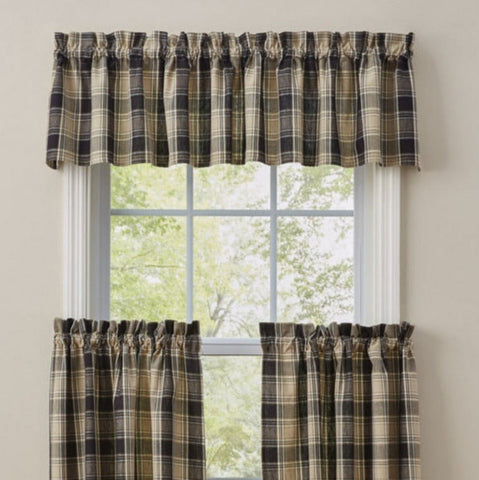 Perfect for your country farmhouse or cabin our Stoneville Valance features black, sandstone tan, and white plaid cotton fabric.